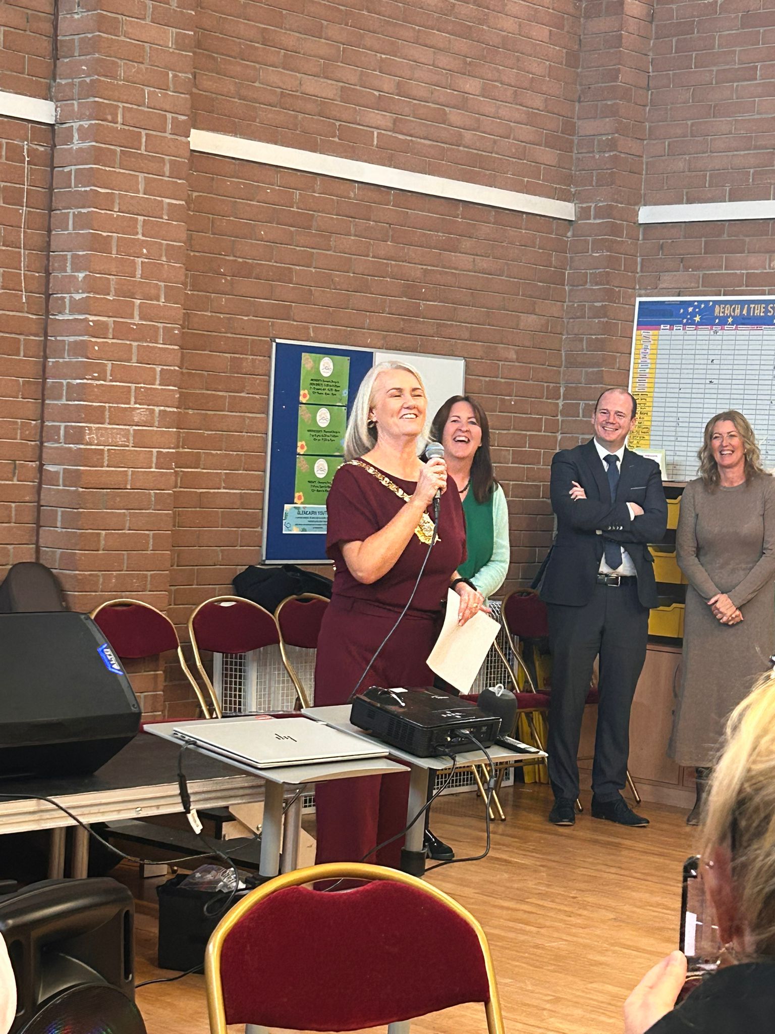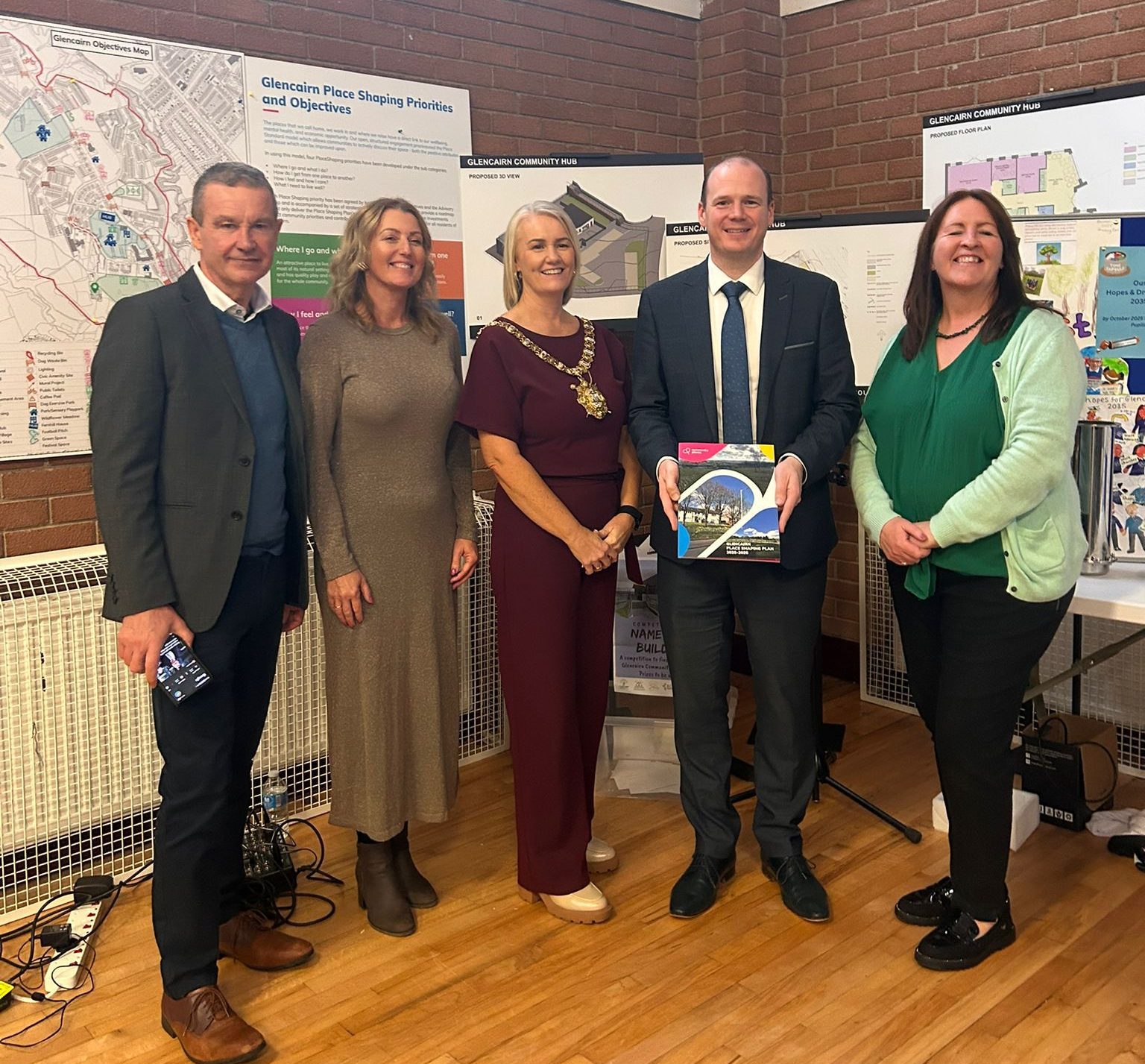 Minister for Communities Gordon Lyons and Lord Mayor of Belfast Cllr Tracy Kelly attended the launch of the Glencairn Place Shaping Plan 2035 in St Andrew’s Hall, Glencairn on 22 October 2025.